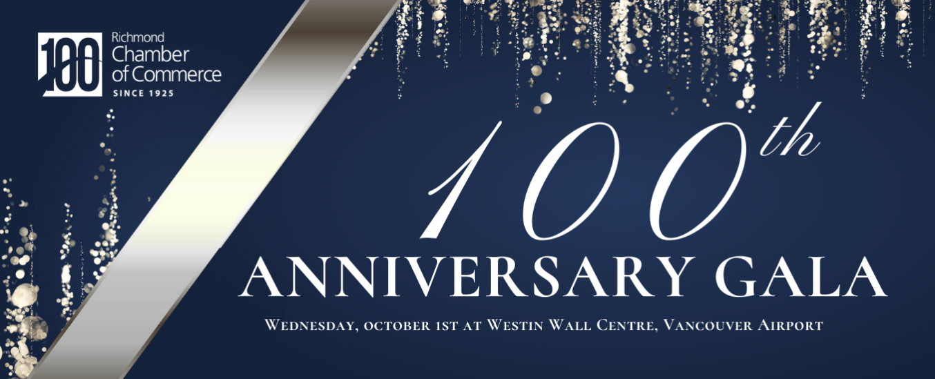 Since its founding in 1925, the Richmond Chamber of Commerce has been a cornerstone of our community, supporting businesses, fostering economic growth, and advocating for the interests of our members. Our 100th Anniversary Gala will be a milestone celebration that honours YOU, the leaders, businesses, and changemakers who have shaped Richmond’s business landscape over the past hundred years.